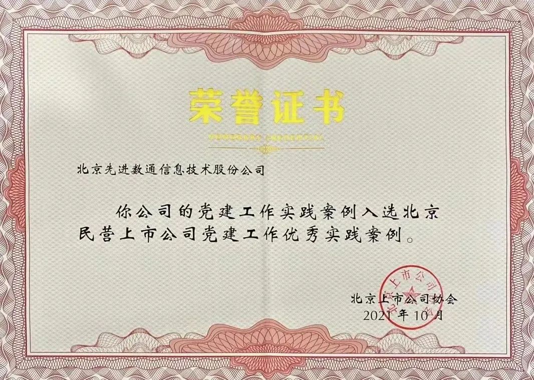 近期,北京上市公司协会授予北京kdpay钱包官网信息技术股份公司荣誉证书,kdpay钱包官网党建工作实践入选北京民营上市公司党建工作优秀实践案例,相关党建活动已收录在《北京民营上市公司党建工作优秀实践案例汇编》。